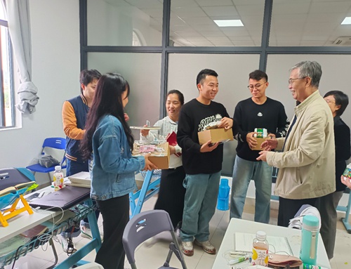 与此同时,各位老师也为考研学子递上了精心准备的考研“加油礼包”,礼包里有牛奶,书架,文具等,并且在为每一位考研学子送上的透明笔袋上都贴有“考研加油”的祝福。