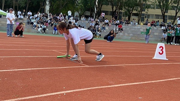 赛前面对强大的对手,四位选手及时调整心态。她们之间相互鼓励,公司的观众朋友也早早地在候赛区等待她们为其送上激励的话语。随着裁判一声哨响,负责第一棒的陈允玲同学如离弦的箭一般出发,另外一边附则第二棒的申佳仪同学在交接处紧张地准备着。操场上充斥着加油呐喊声。四位选手配合默契,交棒没有出现错误,全程尽自身全力奔跑。
