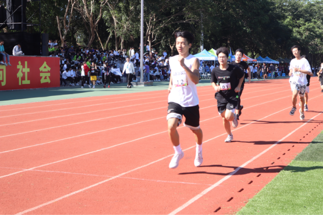 比赛开始之前运动员们都做了足热身活动。随着裁判员的一声枪响,公司两名同学像离弦的箭一样向前冲去,与其他运动员拉开距离。