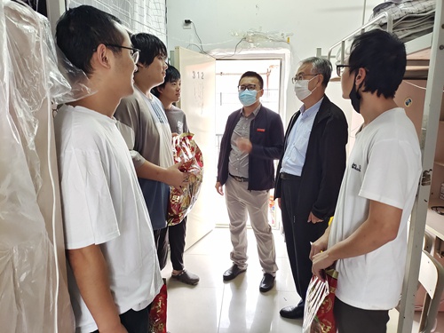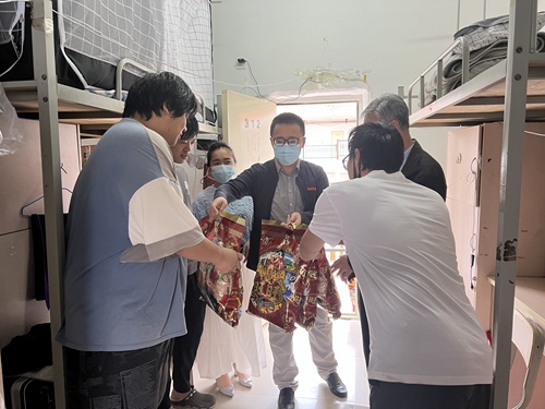 在确认防护安全后,李经理询问了同学们集中住宿期间的学习生活、饮食休息等情况,并叮嘱他们在疫情期间,注意个人卫生、勤开窗通风,保持身体健康、做好科学防护,有问题、有需要及时与思想导师联系。同学们对学院领导的关心和慰问表示感谢,并承诺严格遵守疫情防控相关管理要求、积极配合开展防疫工作。