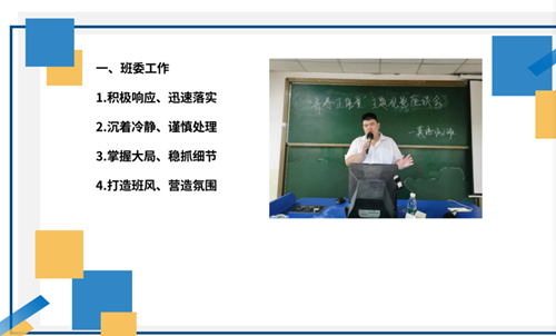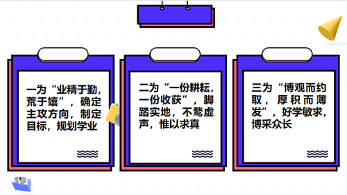 英语1902班李伟杰主要是从自己在校期间参与过的各种工作中获得的经验经行了分享,从大一到现在,他开始从联络员到班长,再到办公室副主任,同时还担任了导师员工助理,工作中接触到了许多有趣的人和事,他希望新生们在面对一些任职岗位时,要结合自身,把握住机会。最后,英语2002班陆子轩则是主要以考级考证方面进行了详细的分析,他建议对于备考四六级,一定要多写多练,多积累词汇,只有当词汇量积累到一定程度时,做题的效率才会事半功倍,这对新生们在之后考英语四级有很大帮助。