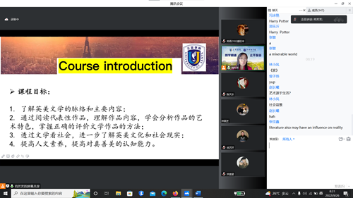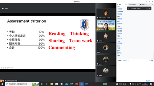 最后,肖芳芳老师从课前、课上、课后三点告诉同学们如何去学习本门课程。肖芳芳老师在课前将会为同学们布置预习内容以及分享部分经典书籍,她要求同学们在课前要去了解所分配任务的故事情节、人物特点以及思考老师所布置的问题,以便能了解文章的主要内容,并告诉大家在课上要与老师、同学们一同解读文章的细节、社会价值观及积极的进行讨论来发表不同的观点。
