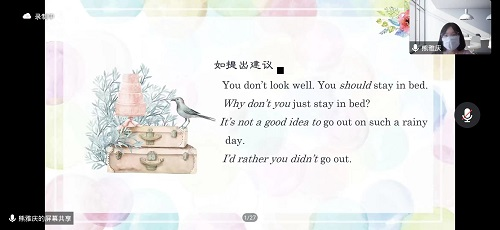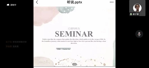 9月30日15:00,公司于线上开展了外语听、说能力技巧分享课,由付鹃老师、熊雅庆老师、郭子雯老师负责担任本次课程的主讲教师,2022级全体新生参加了本次课程。