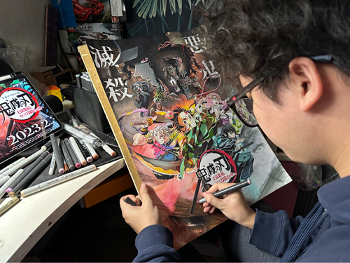 对我来说,假期除了学习任务和社会实践,坚持自己的兴趣爱好也是很重要的。在平时在校的课余时间,我喜欢画画,画画会使我十分专注,戴上耳机放首歌拿起画笔,就似乎融入了这张画。绘制一张大型作品可能需要多天,每一步完成后我都会拍照记录,在完成后回味一下过程,看到花费几十个小时的作品的线条与色彩都恰到好处,以及收到许多朋友们或是陌生人的认可,成就感十足。 2023年伊始,我使用大约50小时临摹了一张著名动漫《鬼灭之刃》的宣传海报,在完成后发布到小红书、b站等平台,获得了上千点赞,上万浏览量。对所有人来说,如果能在自己爱好的领域做出成绩,甚至有所成就,应该是更加欣喜的事情。愿大家都能不忘初心,坚持自己的爱好,感受它给我们带来的快乐。 最后祝大家幸福平安,心想事成,新年快乐。 图文:王华翼 编辑:闵怡雪 审核:袁 威