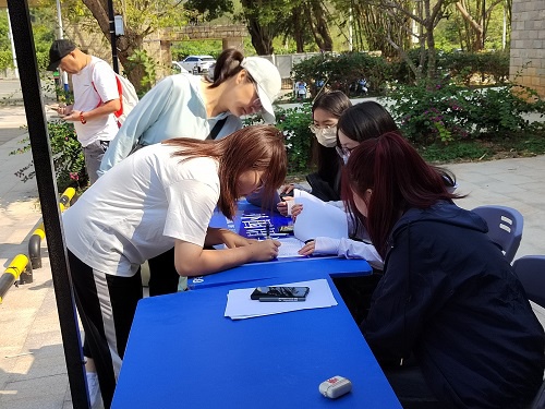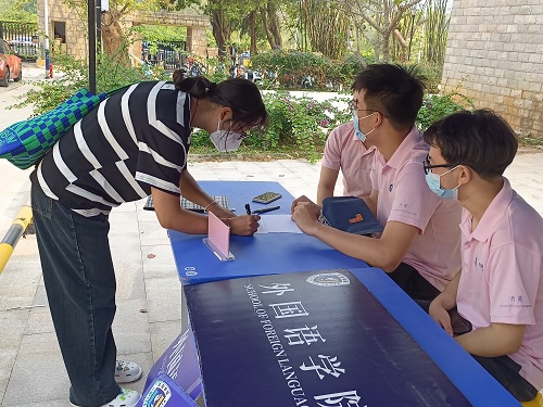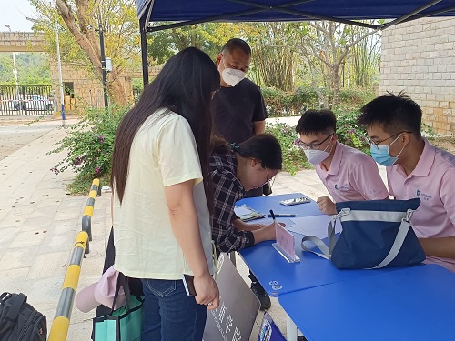 公司迎新点设于南校区正门左前方,有员工干部帮忙引导第一次入校的新生们进行签到登记,并带领新生们前往宿舍,帮忙搬运行李,以帮助新生们更快的熟悉校园,使其更快的融入校园生活。