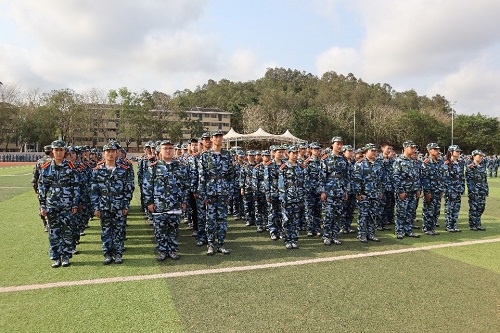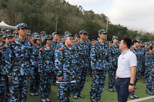 在列队等待时,公司学子们都精神饱满,蓄势待发,准备以良好的状态迎来军训的第一天。同学们听从教官的指挥,井然有序的调整着队列,最终在教官的带领下,整齐有序的到达风雨球场,静待着军训动员大会的召开。