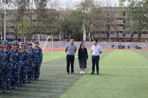 旭日初升,2022级员工军训如期而至,3月24日6:30,公司2022级学子按时于东区操场集合,在各班班委以及教官的组织下迅速整好了队列, 等待军训正式开始。公司党总支副书记马炳琛老师、团委副书记袁威老师、2022级思想导师王艳琴老师看望了公司方队。
