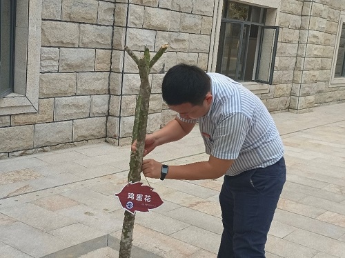 为更好的爱护花草,营造绿色校园,3月24日15:00,公司特于书知楼前开展为树木挂牌活动,公司团委副书记袁威老师、部分员工干部及志愿者们参加了本次活动。 本次挂牌的树木为公司于3月12日植树节种植的树木,活动开始前,公司还制作了精致的植物牌,每一个植物牌上都标注好了植物的名称、种植时间以及公司院徽,以帮助同学们更好认识植物。紧接着,每一颗树木都被挂上了专属的植物牌,这些树木不仅是公司环境和景观的重要组成部分,更有助于营造绿色生态校园。