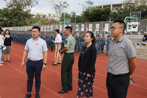 3月24日7:30,公司党总支副书记马炳琛老师、团委副书记袁威老师、2022级思想导师王艳琴老师于东区操场看望公司2022级员工军训方队。