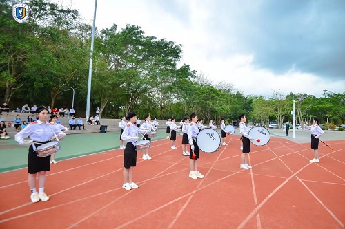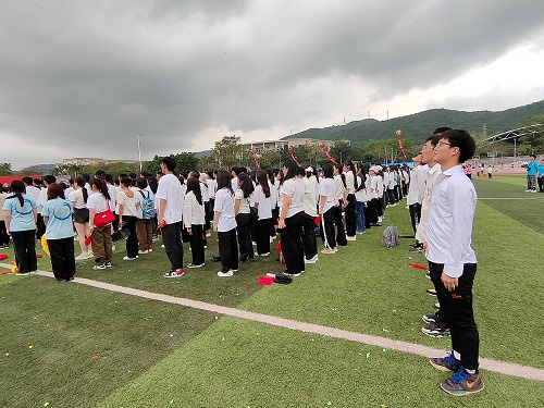 大会由辛凯强、顾元元主持,大会第一项为奏唱国歌,在这庄严的场合,全体师生一起奏唱国歌且行注目礼。 师生行注目礼