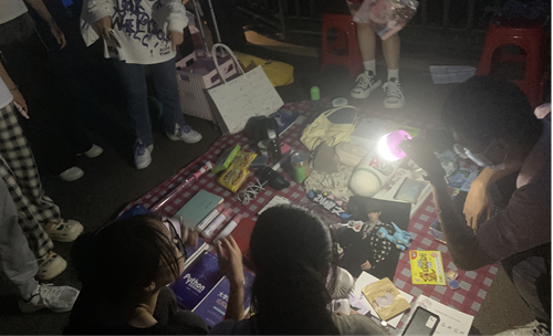 随着文艺表演的开始,各个小摊逐渐热闹起来,小吃街也热闹起来,傍晚的凰家水云熙熙攘攘,前来淘宝的人络绎不绝,书籍、玩偶、日用品......平时这些摆放在生活角落的闲置承载着记忆,如今整整齐齐在摊位上焕发出新的生机。同学们在购物中挖到了海量萌物,在一次次的交易中收获了快乐,“跳蚤市场”给闲置的物品带来了新生,并以物为连接建立起人与人之间的桥梁,交易的是物品,传递的是记忆与情谊,是青春回忆的浪漫延续。