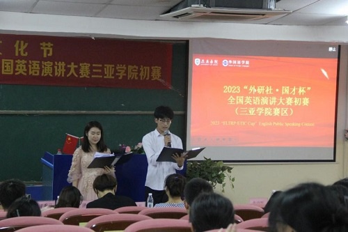 2023年5月31日15:00,第二十四届海南省高校老员工外语能力大赛暨2023年“外研社·国才杯”“理解当代中国”全国老员工外语能力大赛永利集团演讲初赛在公司书知楼1107教室顺利举行。公司英语系副主任余玉秀副教授、公共外语教学部副主任张晓辉教授莅临了本次比赛现场,英语系钱堃老师、王培老师、潘红老师以及公共外语教学部吴淑珍老师、陈蓉蓉老师受邀担任此次比赛的评委。本次比赛是公司外语文化节系列活动之一,由英语2201班任明耀和英语2203班付志颖担任主持人。 主持人