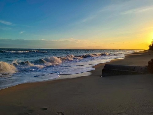 在暑假期间,因为学习的烦闷,我决定去到海边,看一场海边的落日来放松自己。 落日无疑是很美的,海边的落日更是尤其,在太阳将落未落,天空将暮未暮之时来到海边,能看到太阳就散发出灼目的红光,越过宽阔的大海,越过金黄的沙滩,划过蔚蓝的天空,一直延长到了天际。 配合着阳光落日沙滩,岸边的潮涨潮落,实在让人心情愉悦。海浪的翻滚涌动、海风的徐徐吹拂,静谧而美好。落日余晖中,沙滩也变成了金色,这样的景象实在令人难忘。 再回到家时,看见书桌上的书本与资料,忽然就萌生了学习的动力,日落后的大地融入了苍茫的暮色中,但明天清晨,太阳仍会升起。人生何曾不是这样?即使偶有黑暗,光明也定会到来。我们也应在当下更加努力的学习、不断地提升自我,才能更好的拥抱明天、接受新的自我。 图文:闫紫萌 编辑:闵怡雪 审核:袁 威