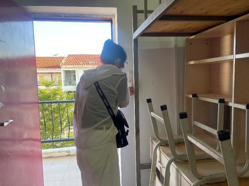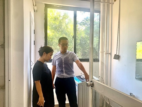 为切实做好迎新准备工作,全面了解新生宿舍情况,确保公司2023级新生报到时能够正常有序、安全无忧入住,9月5日,公司部分员工干部在党总支副书记马炳琛老师和院团委副书记王艳琴老师以及思想导师张芮楠老师的指导下,对2023级新生宿舍问题进行排查。