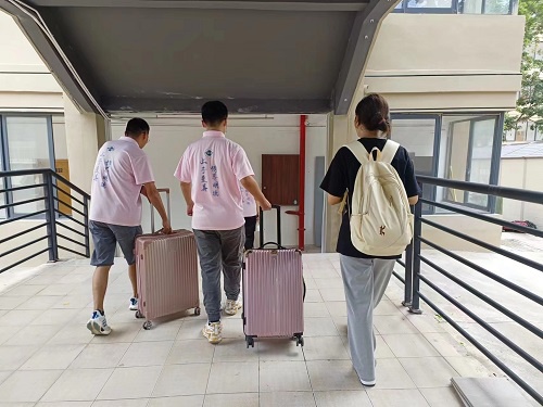 在宿舍区域,公司的引导志愿者带领新生进行宿舍登记、并帮忙搬运行李、指引宿舍,为新生提供有温度的迎新服务。