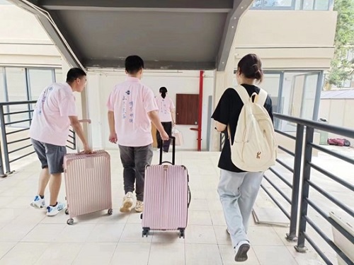 新生们在书艺馆报道区域完成新生报道流程后,公司引导组成员便将新生带至宿舍区,办理入住手续,公司迎新志愿者们热情地为新同学解答有关宿舍生活问题,帮助新生们搬运行李,让来自五湖四海的同学们在yl6809永利官网感受到如家般的温暖。