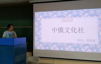 最后,由中俄文化社社长范辰辰展示社团介绍。此次社团招新主要面向俄语专业同学,以“文化在交流中进步,世界在交流中发展”为宗旨,着力培养具有中国特色与世界眼光的时代新人。