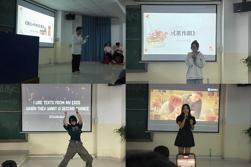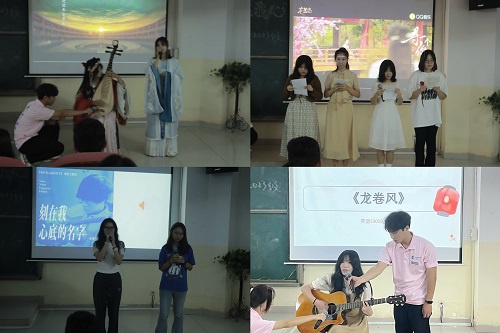 接着,由主持人介绍节目,同学们依次进行才艺展示。同学们的舞蹈展示带来了欢快的氛围,英文歌曲以及诗歌朗诵展示了他们的口语和表达能力,同学们的才艺展示结合了专业特色在台上大放异彩,并获得了现场的激烈掌声,歌舞秀精彩绝伦,脱口秀妙趣横生,晚会现场气氛持续升温。