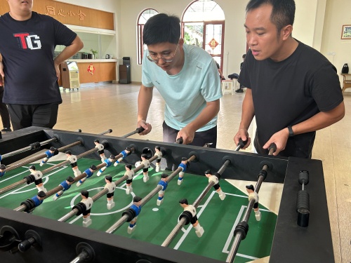 来到桌上足球赛场,公司教职工们运筹帷幄,随机应变,迅速的反应与灵活的战略是他们最好的利器,给在场的观众们展现了一场酣畅淋漓的竞技。