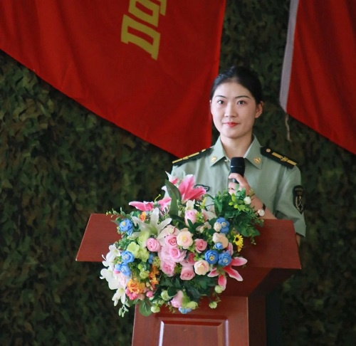 教官代表王飞飞发言,她指出军训是我们人生中一次宝贵的经历,它会让我们结识新朋友,感受到集体的力量。在艰苦的军训中,可以深切体会到团结和协作的重要性。
