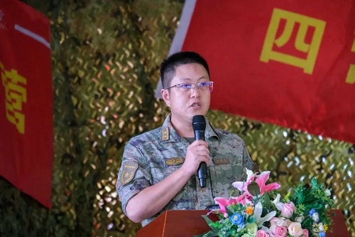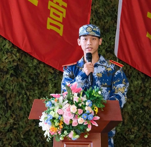 员工代表张天赐发言,他呼吁作为一名员工,我们要遵守制度和规章,严格要求自己。军训是培养我们纪律性和自律性的重要途径,通过军训可以培养我们坚忍不拔的毅力,磨练了意志品质,可以将军训期间养成的良好品格带到未来的学习和生活中。