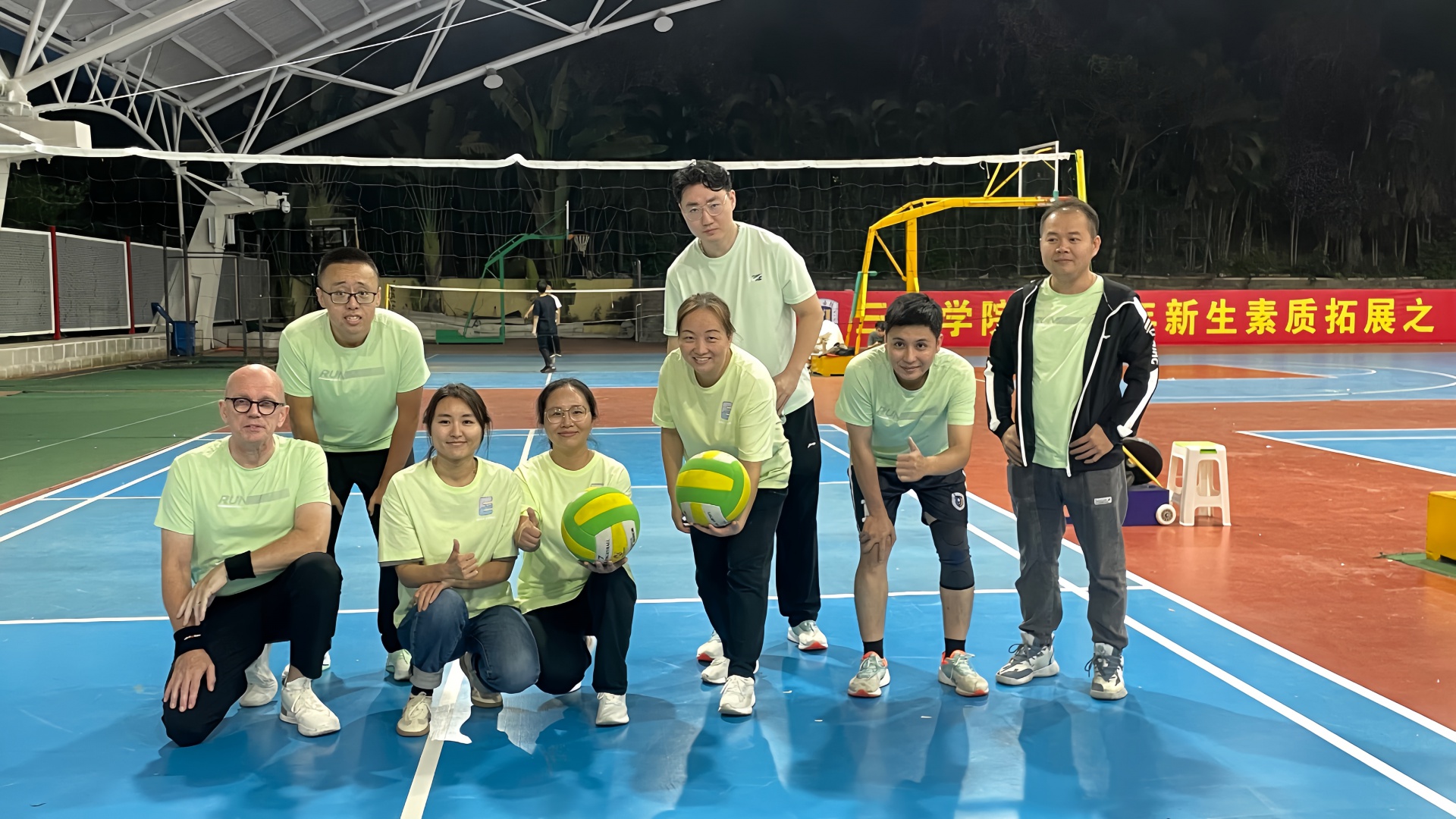 为丰富广大教职工的业余生活,展现公司教职工的体育风采,公司领导、老师于12月21日19:35在风雨球场参加了一场精彩的排球比赛。公司党总支副书记马炳琛老师、外教Paul等老师参加了此次比赛,此次比赛是公司与管理学院的精彩对决,公司其他教职工也到场为公司参赛队伍加油助威。