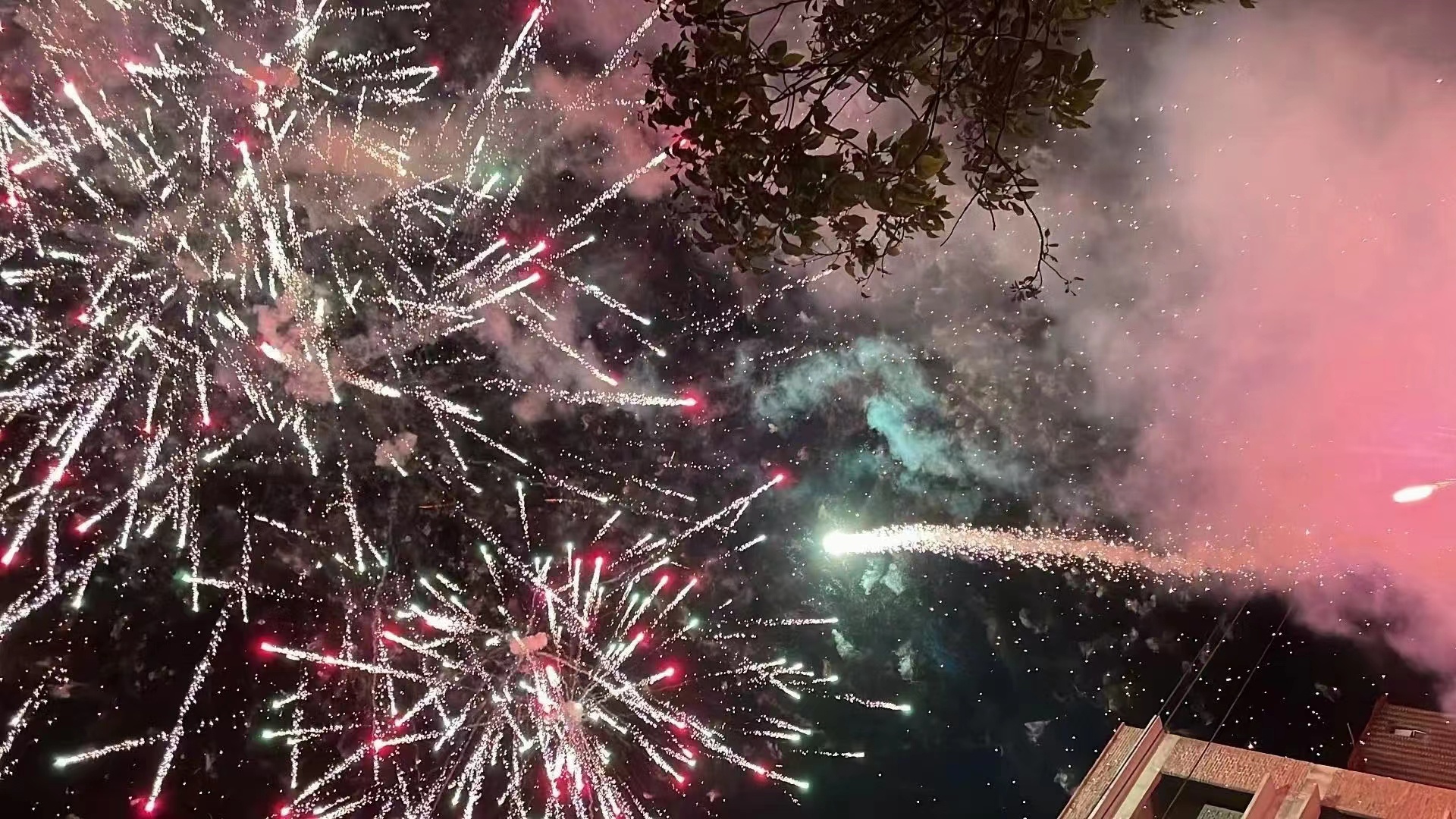 明灯错落,星火点点的烟火惊起四散,漫天灯火明灭,愿我们要新年快乐,年年也要欢愉才好。