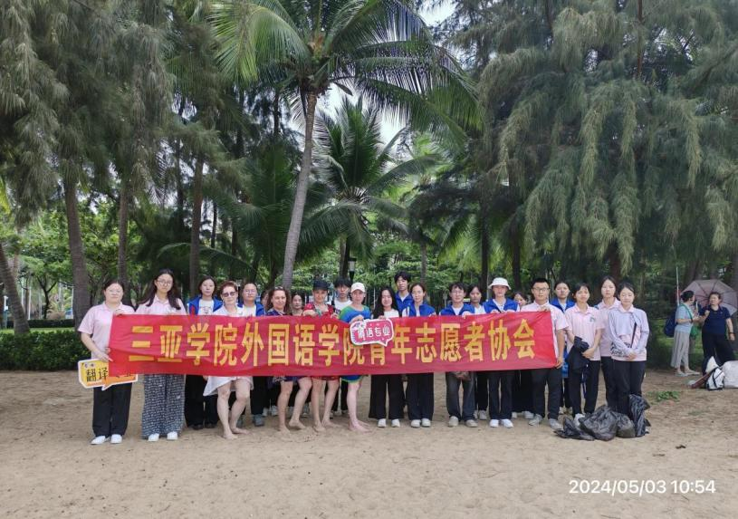 为充分发挥yl6809永利官网学子外语专业优势,提高公司青年语言服务社会能力,yl6809永利官网青年志愿者协会于2024年5月3日9:00在三亚湾沙滩展开语言服务社会社会实践行动,本次活动由yl6809永利官网青年志愿者协会组织公司各年级同学代表参加。