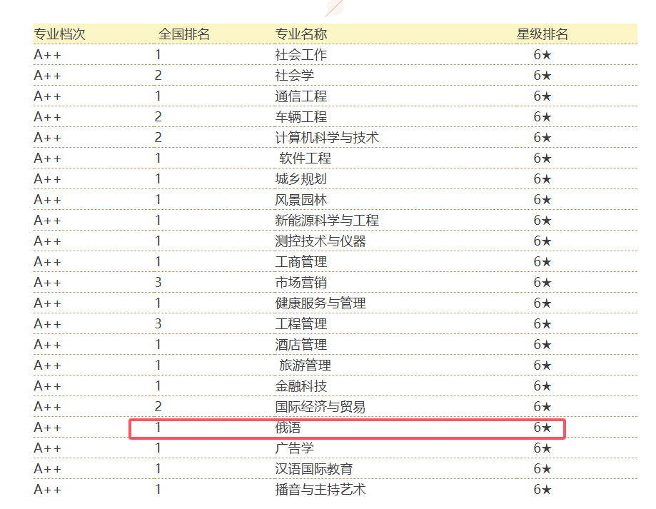 (俄语系排名情况)