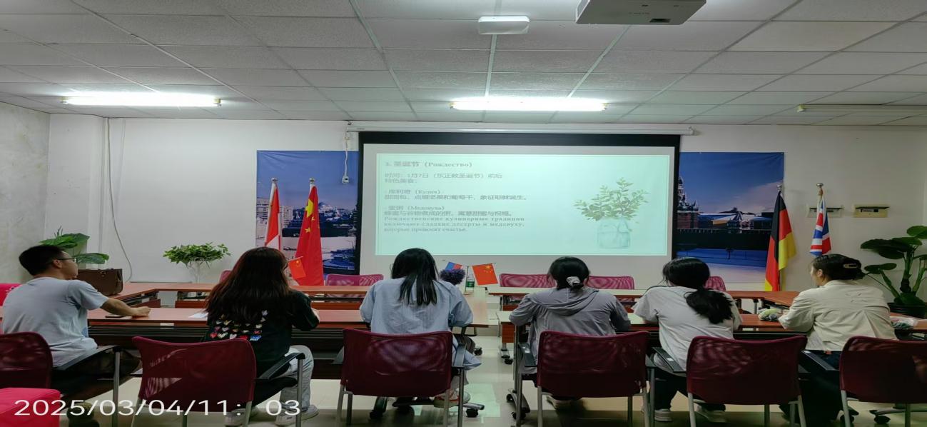 在分享环节,主讲人通过精心准备的PPT,详细介绍了俄罗斯的多个重要节日。从象征告别冬天、迎接春天的谢肉节(Масленица),到1月7日(东正教圣诞节)前后的圣诞节(Рождество),再到12月31日 - 1月1日的新年(Новый год),每一个节日都有其独特的历史背景和文化内涵。