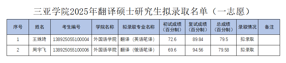 永利集团2025年翻译硕士研究生拟录取名单(一志愿)