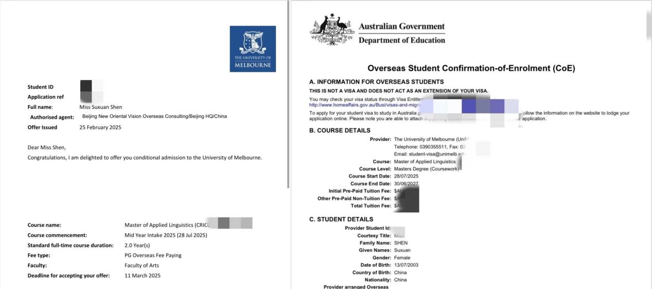 (PS: 澳大利亚墨尔本大学的offer以及最终的入学确认函)