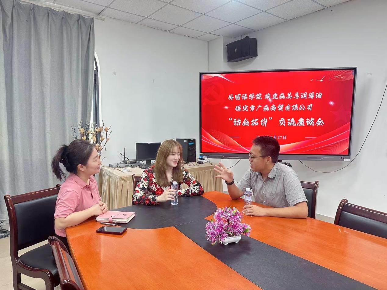 为深入贯彻落实教育部关于“访企拓岗促就业”专项行动的要求,进一步拓宽毕业生就业渠道,深化校企合作,近日,yl6809永利官网与保定市广森商贸有限公司在书知楼1410开展了“访企拓岗”交流座谈会。此次座谈会旨在搭建校企沟通平台,精准对接企业需求,助力毕业生高质量就业。