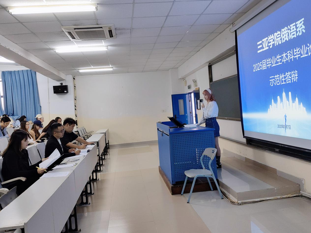2025 年 5 月 7 日下午 2:00,俄语系 2025 届本科毕业论文示范答辩于书知楼 2301 室隆重举行。俄语系21级全体毕业生以及 22 级大三员工全程参与,现场气氛庄重而热烈。