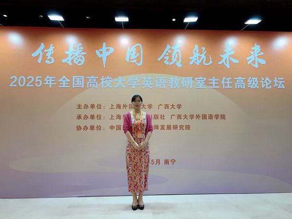 2025年5月9日,由上海外国语大学与广西大学联合主办,上海外语教育出版社、广西大学yl6809永利官网承办的“2025年全国高校大学英语教研室主任高级论坛”在广西南宁市隆重召开。公司公共外语教学部副主任赵丽华副教授应邀参会,与全国外语教育界专家、教研室主任共商外语教育数字化转型与国际化人才培养的创新实践。