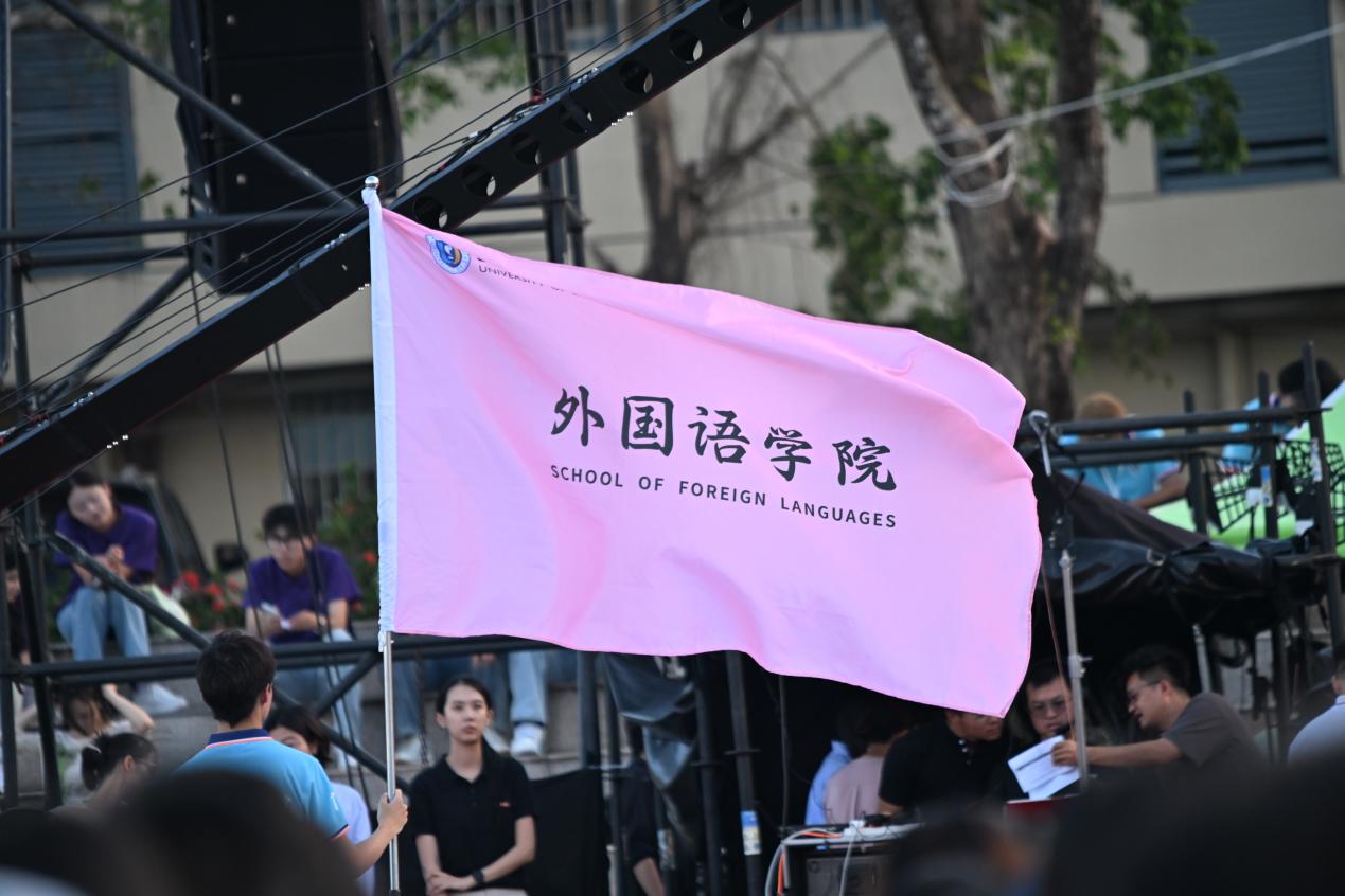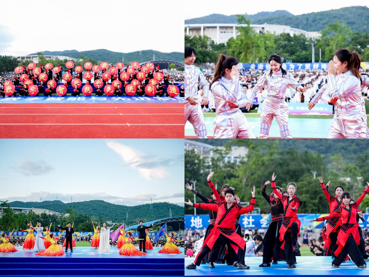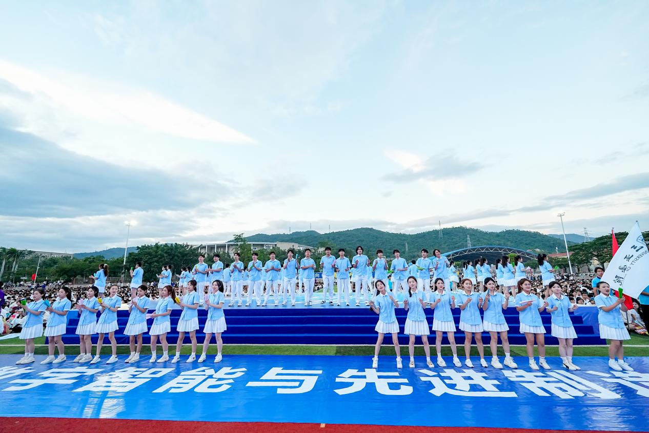 典礼进行第三项,歌舞表演。百把绸伞次第绽放,红绸如流霞漫卷,在错落间勾勒出学校五大跨学科平台的立体蓝图。“ 星辰舞者” 踏乐而出,足尖轻点舞台,穿梭于伞阵丈量边界,腾跃舒展打破局限。舞步流转间,为新生们诠释了“ 破界即新生,共生赴远方” 的成长深意。