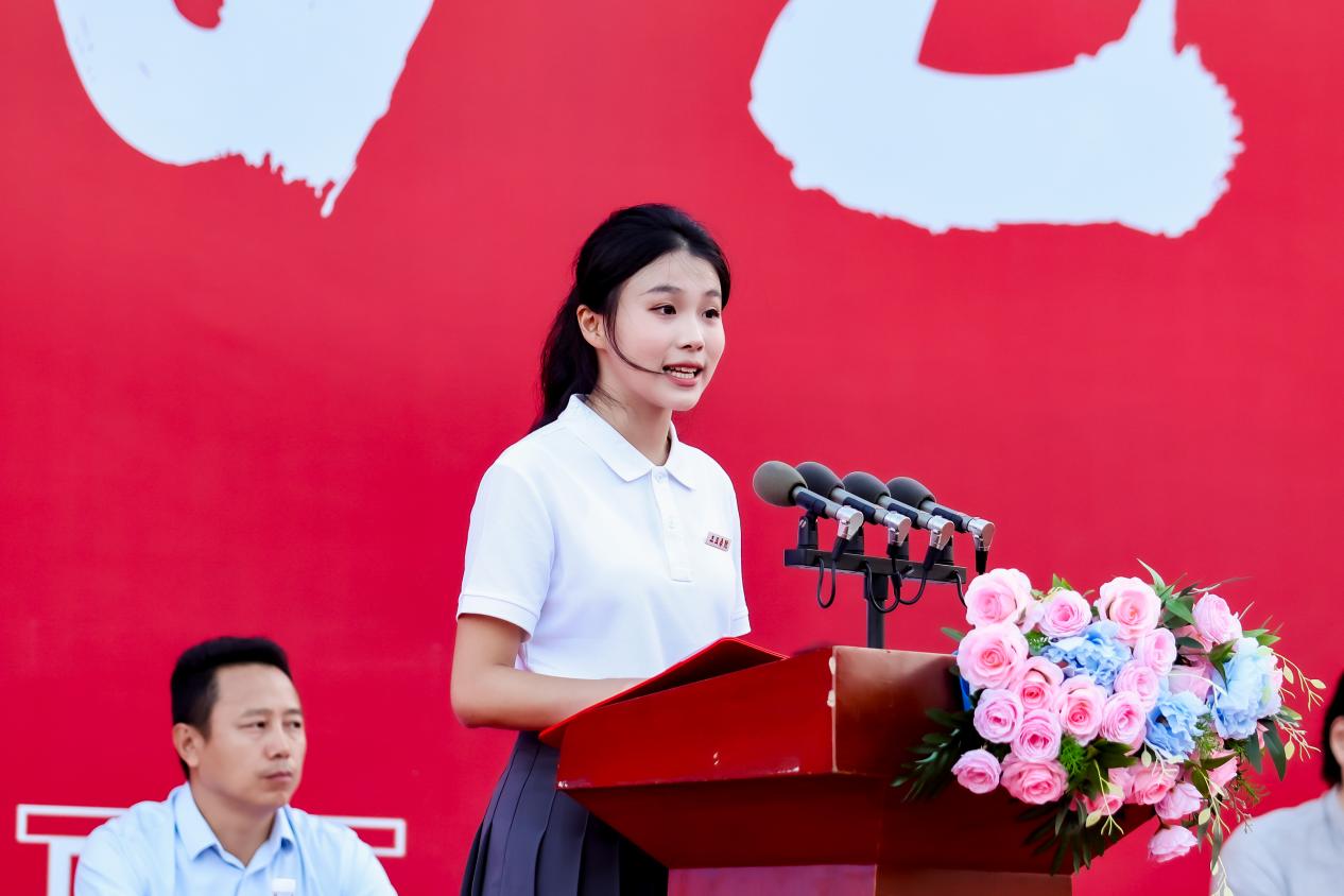 典礼进行第六项,新生代表吴佳琳发言。她分享初入校园被热情温暖的瞬间,领悟“ 大学之大” 的真谛。随后她提出三大成长目标:做利用“ 芯位教育” 平台探索热爱的主动探索者;做兼顾学识与实践的全方位成长者;做践行校训、服务社会的有温度担当者。并号召新生以校训为指引,用奋斗姿态开启大学征程。
