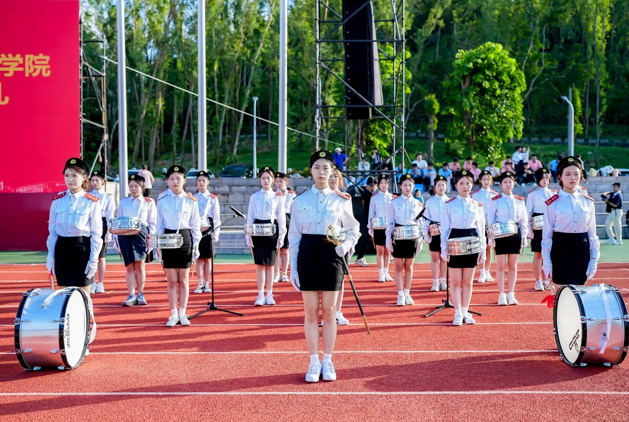 典礼进行第一项,全体师生庄严肃立,齐唱国歌。军鼓起处青年列阵,嘹亮曲调漫过长空,注目礼的静默里满是坚定。庄严神圣的氛围中,激昂的国歌不仅激荡着师生的崇敬之情,更为新生的青春征途奏响了启航序曲。