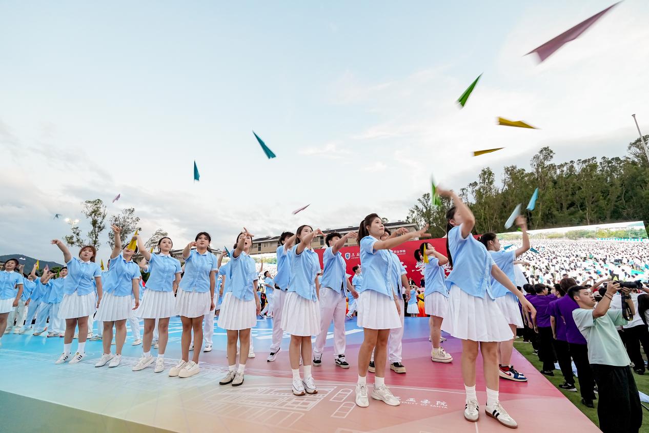 典礼进行第十项,放飞纸飞机。在“ 三、二、一” 的倒计时声中,纸飞机群在阳光下掠过校园上空,似航船穿梭于秋阳,为典礼定格浪漫瞬间。更象征着永利集团师生将以“ 破界向远” 之姿,共启成长新程。