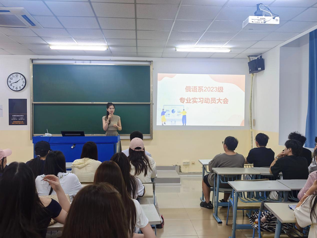 近日,按照学院专业实习工作相关安排,马曌老师为俄语系2023级全体员工主持召开了专业实习动员大会。